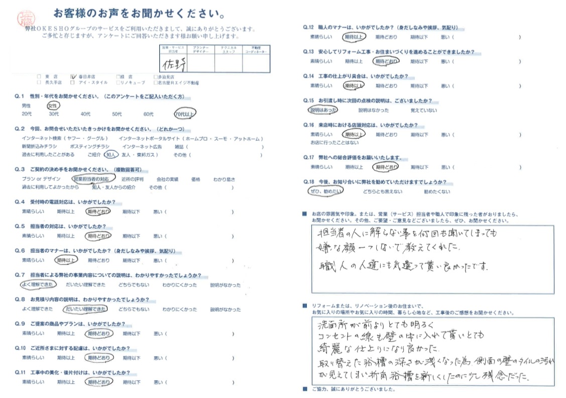 お店の雰囲気や印象。または、営業(サービス)担当者や職人で印象に残った者がおりましたら、お聞かせください。その他、ご要望・ご意見などございましたら、ぜひ、お聞かせください。
