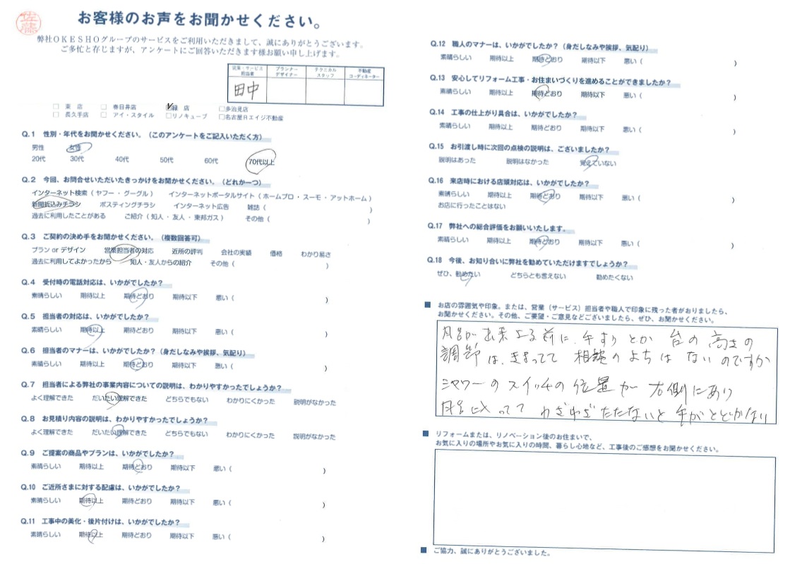 お店の雰囲気や印象。または、営業(サービス)担当者や職人で印象に残った者がおりましたら、お聞かせください。その他、ご要望・ご意見などございましたら、ぜひ、お聞かせください。