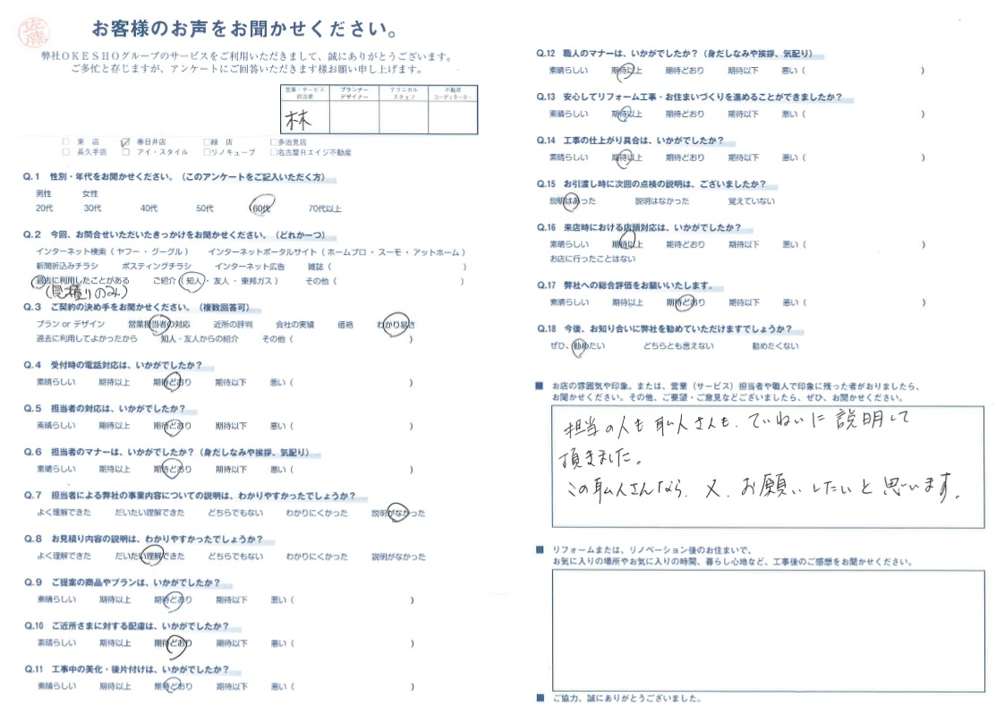 担当の人も 職人さんも ていねいに説明して頂きました。