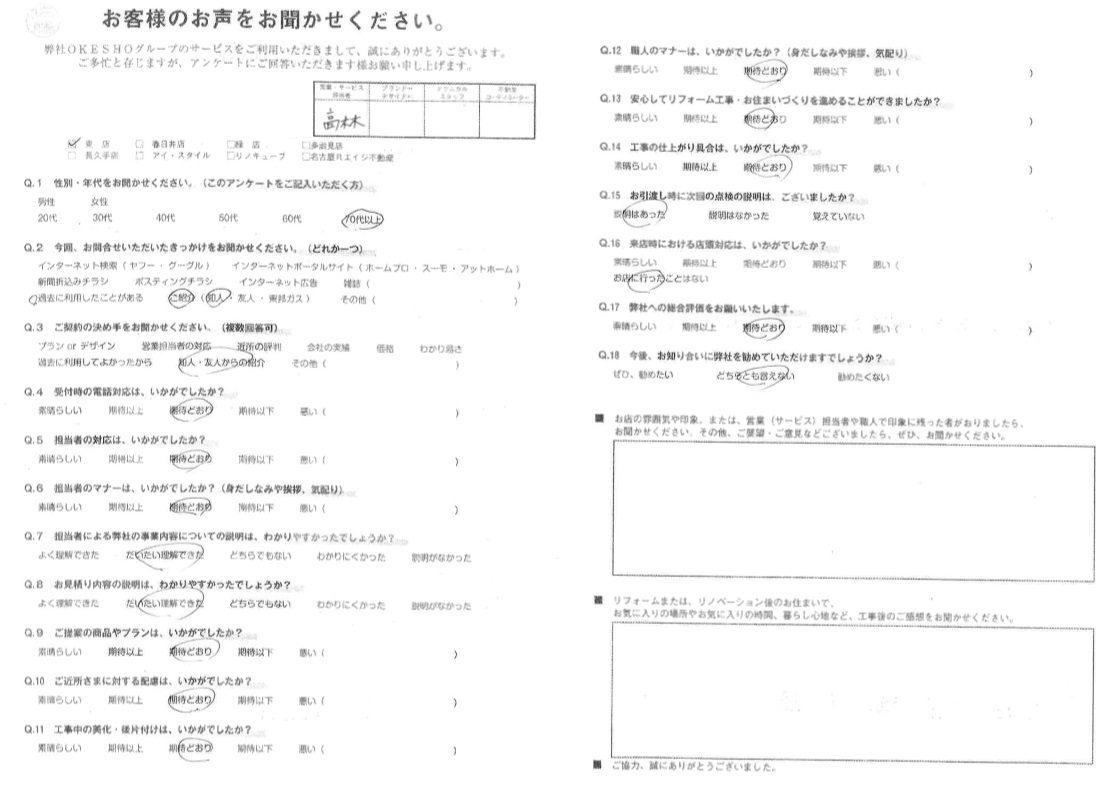 お客様アンケート一覧