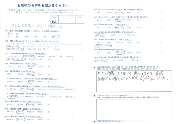 担当の斉藤さまをはじめ職人の方々も皆様 真面目に対応していただき好印象でした。