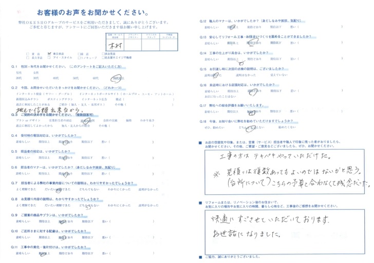 お店の雰囲気や印象。または、営業(サービス)担当者や職人で印象に残った者がおりましたら、お聞かせください。その他、ご要望・ご意見などございましたら、ぜひ、お聞かせください。