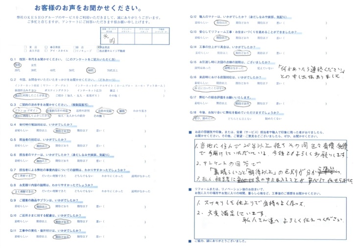 お店の雰囲気や印象。または、営業(サービス)担当者や職人で印象に残った者がおりましたら、お聞かせください。その他、ご要望・ご意見などございましたら、ぜひ、お聞かせください。