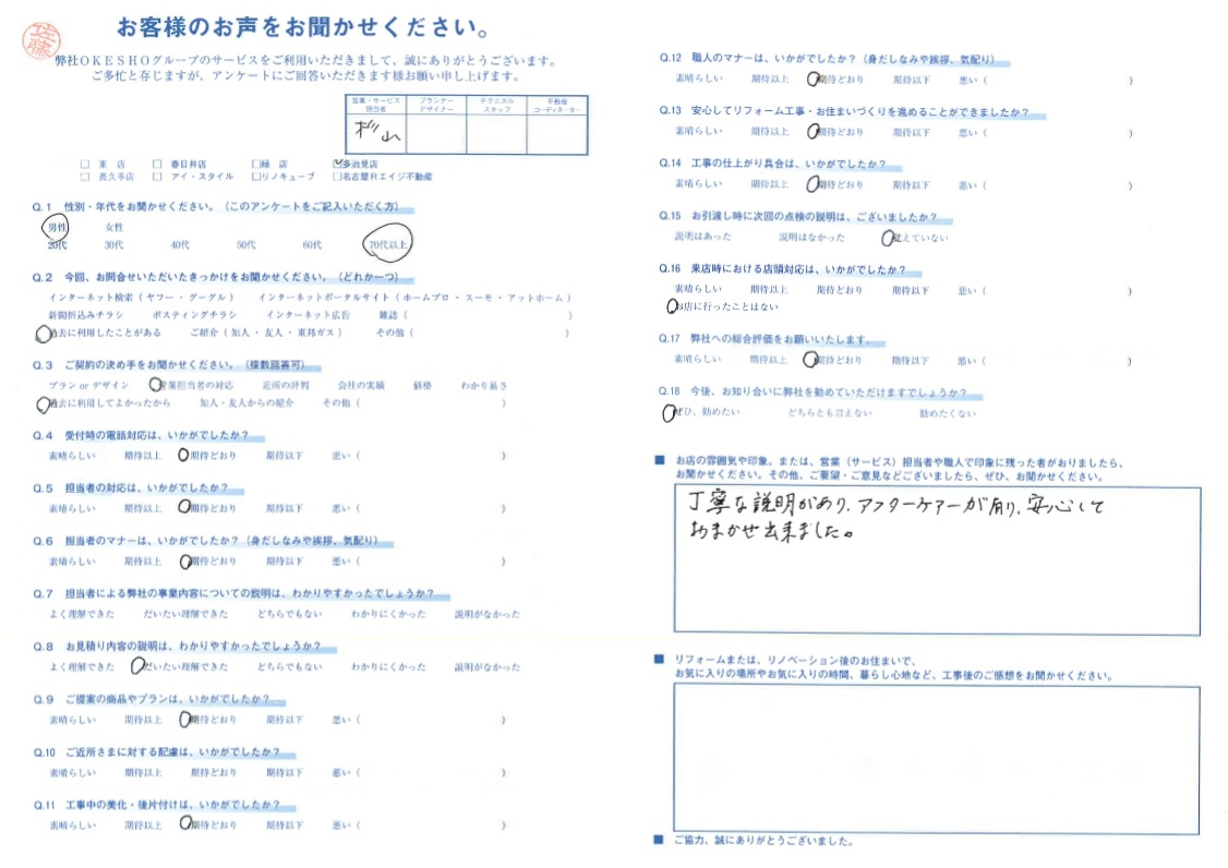 丁寧な説明があり、アフターケアが有り、安心しておまかせ出来ました。