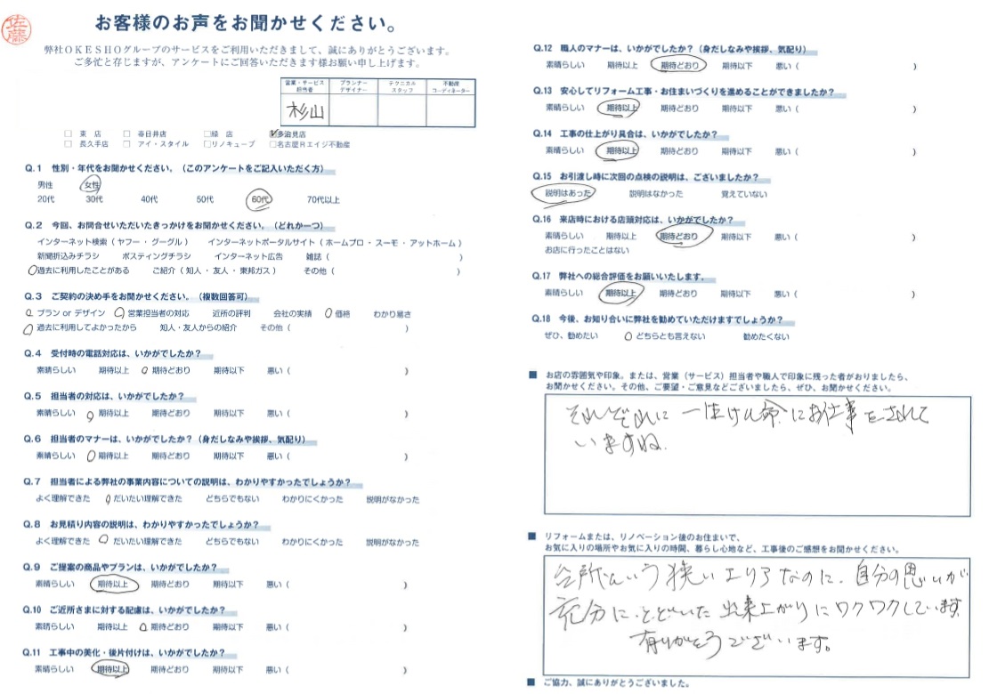 お店の雰囲気や印象。または、営業(サービス)担当者や職人で印象に残った者がおりましたら、お聞かせください。その他、ご要望・ご意見などございましたら、ぜひ、お聞かせください。