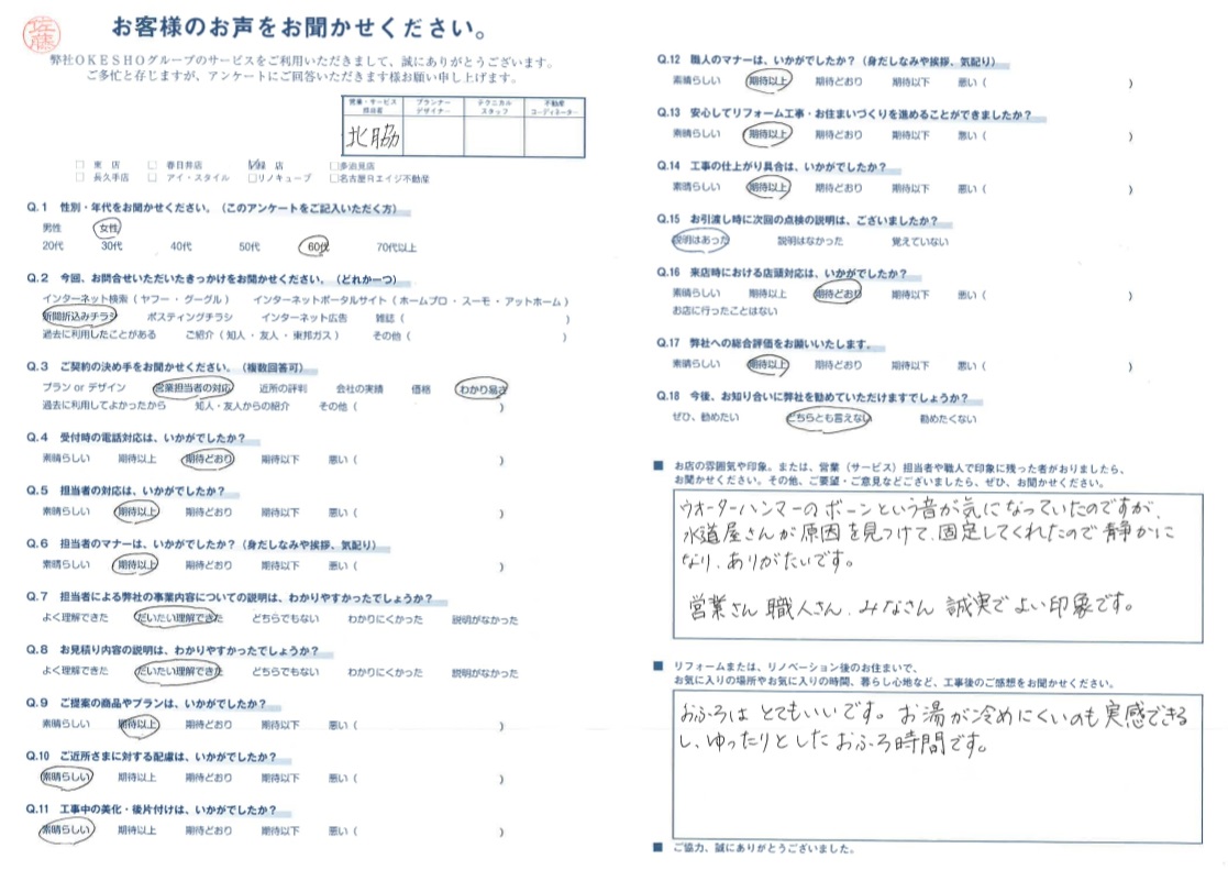 お店の雰囲気や印象。または、営業(サービス)担当者や職人で印象に残った者がおりましたら、お聞かせください。その他、ご要望・ご意見などございましたら、ぜひ、お聞かせください。