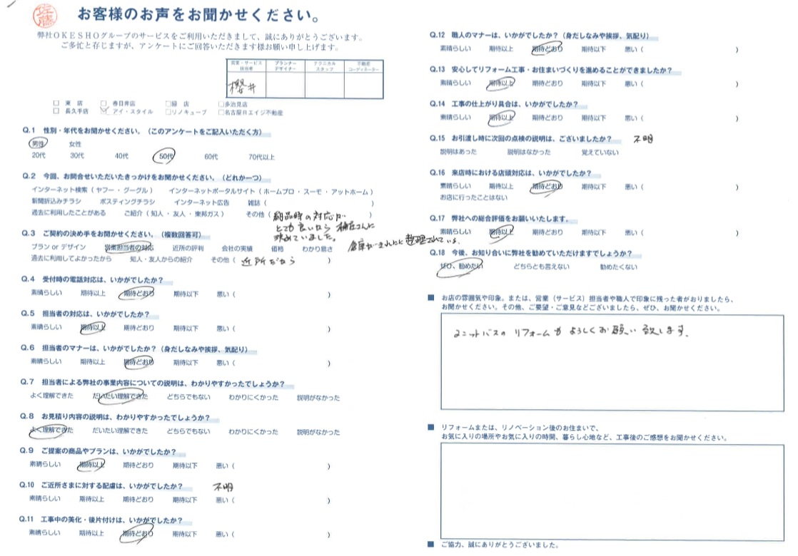 お店の雰囲気や印象。または、営業(サービス)担当者や職人で印象に残った者がおりましたら、お聞かせください。その他、ご要望・ご意見などございましたら、ぜひ、お聞かせください。