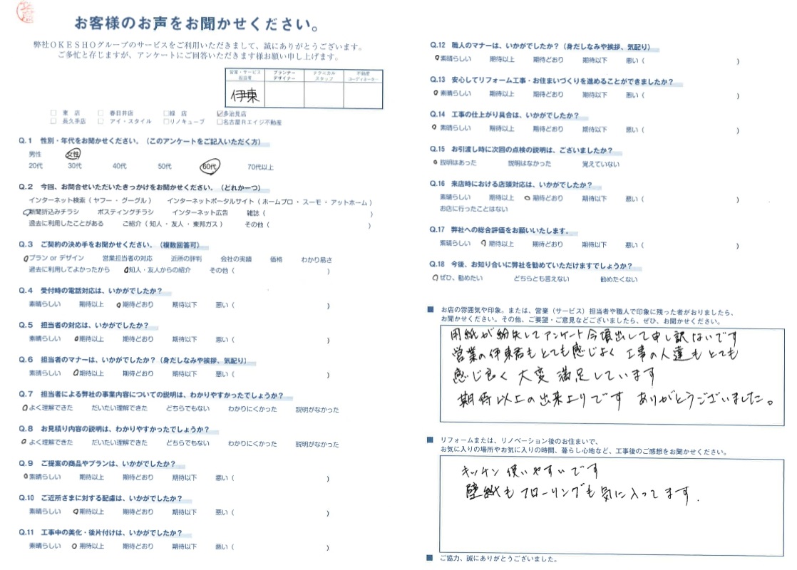 営業の伊東君もとても感じよく 工事の人達もとても感じ良く大変満足しています。