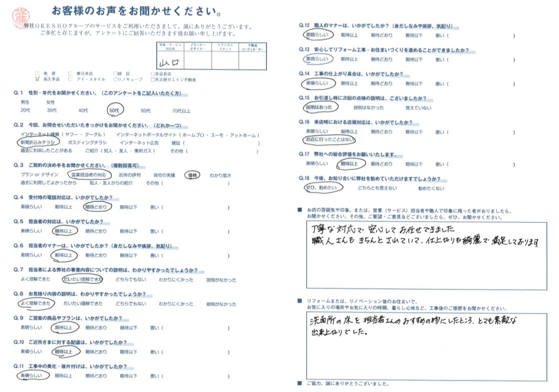 職人さんもきちんとされていて、仕上がりも綺麗で満足しております。