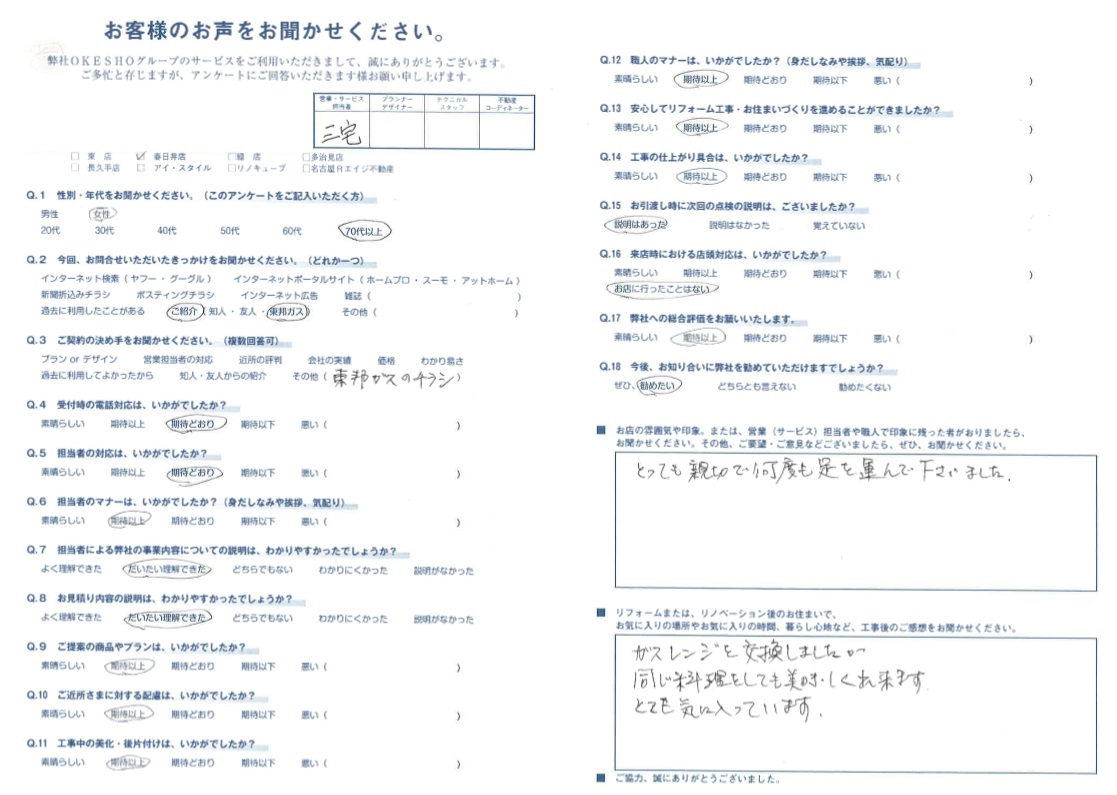 お店の雰囲気や印象。または、営業(サービス)担当者や職人で印象に残った者がおりましたら、お聞かせください。その他、ご要望・ご意見などございましたら、ぜひ、お聞かせください。