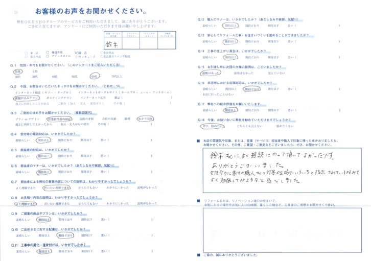 お店の雰囲気や印象。または、営業(サービス)担当者や職人で印象に残った者がおりましたら、お聞かせください。その他、ご要望・ご意見などございましたら、ぜひ、お聞かせください。