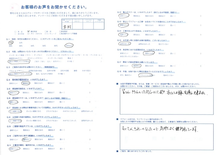 お店の雰囲気や印象。または、営業(サービス)担当者や職人で印象に残った者がおりましたら、お聞かせください。その他、ご要望・ご意見などございましたら、ぜひ、お聞かせください。