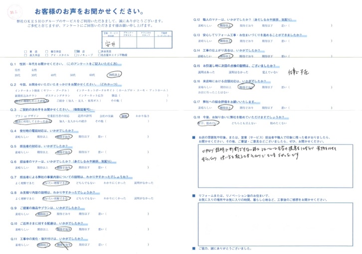 お店の雰囲気や印象。または、営業(サービス)担当者や職人で印象に残った者がおりましたら、お聞かせください。その他、ご要望・ご意見などございましたら、ぜひ、お聞かせください。