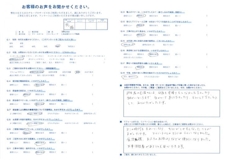 担当者の光岡さんは 何度も見積りをしなおして下さったり、細かいところまで気がついて直して下さったり、そうじして下さったりして ありがたかったです。