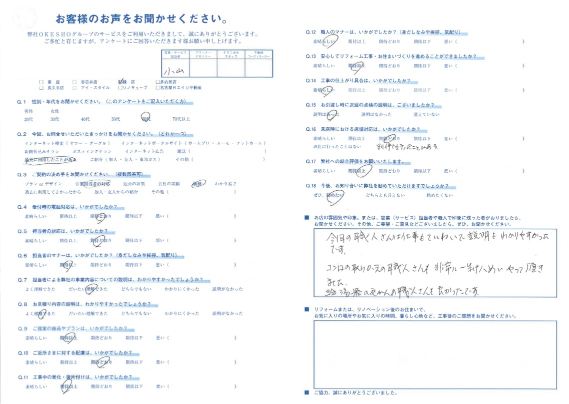 お店の雰囲気や印象。または、営業(サービス)担当者や職人で印象に残った者がおりましたら、お聞かせください。その他、ご要望・ご意見などございましたら、ぜひ、お聞かせください。