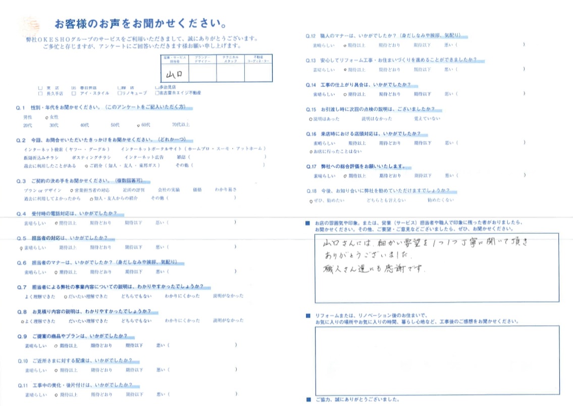 山口さんには 細かい要望を1つ1つ丁寧に聞いて頂き ありがとうございました。