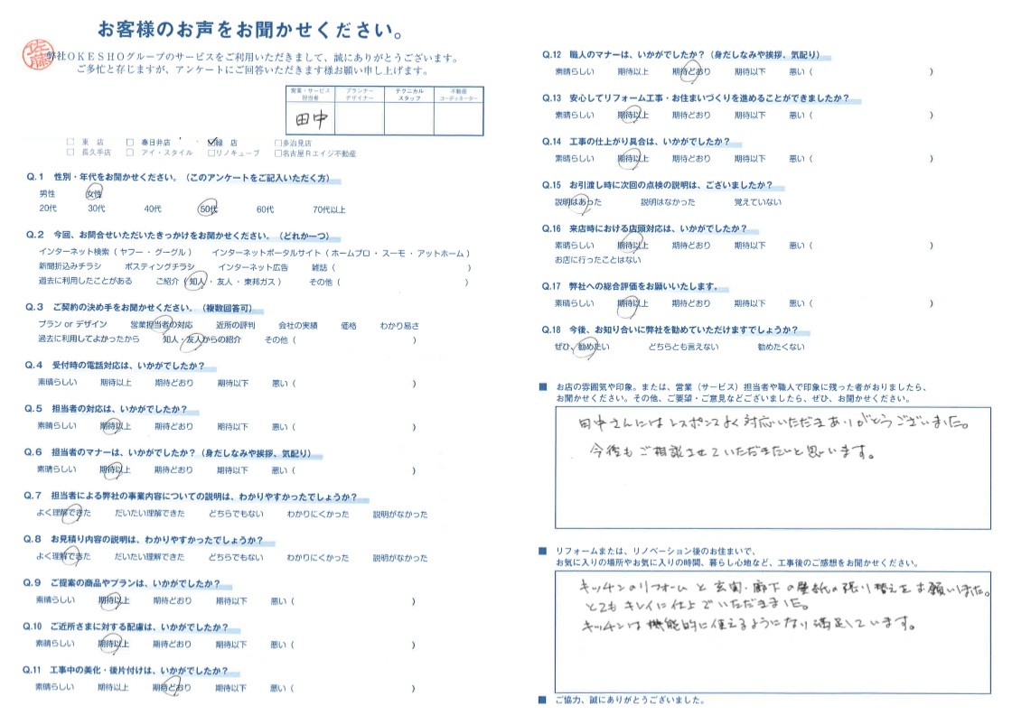 田中さんには レスポンスよく対応いただき ありがとうございました。