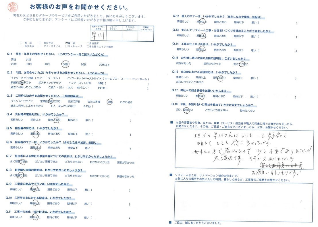 担当の早川さんは いつも一生懸命で 明るくとても感じ良かったです。