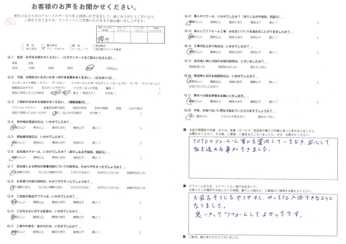 TOTOのショールーム等にも案内していただき、安心して話を進める事ができました。