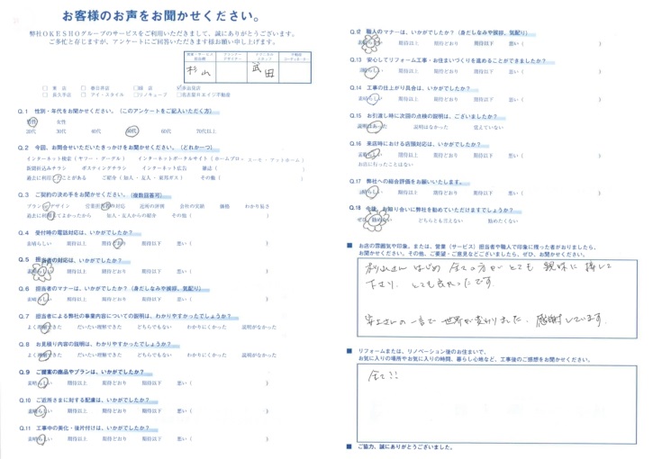 お店の雰囲気や印象。または、営業(サービス)担当者や職人で印象に残った者がおりましたら、お聞かせください。その他、ご要望・ご意見などございましたら、ぜひ、お聞かせください。