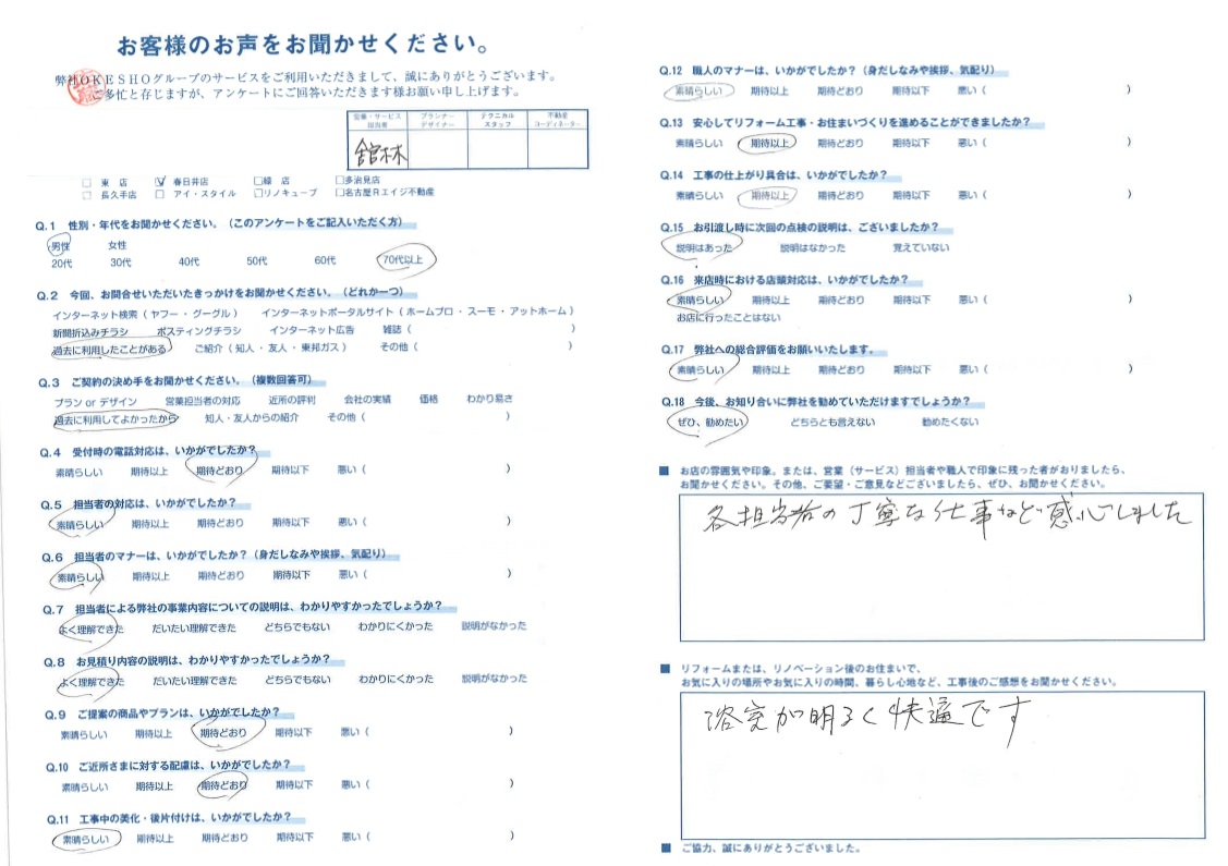 お店の雰囲気や印象。または、営業(サービス)担当者や職人で印象に残った者がおりましたら、お聞かせください。その他、ご要望・ご意見などございましたら、ぜひ、お聞かせください。