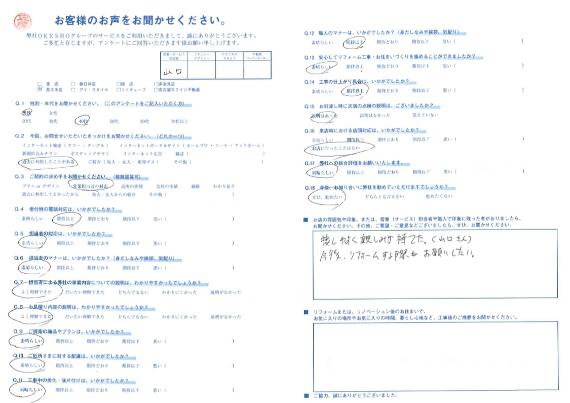 お店の雰囲気や印象。または、営業(サービス)担当者や職人で印象に残った者がおりましたら、お聞かせください。その他、ご要望・ご意見などございましたら、ぜひ、お聞かせください。