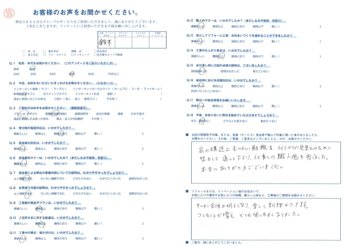 お店の雰囲気や印象。または、営業(サービス)担当者や職人で印象に残った者がおりましたら、お聞かせください。その他、ご要望・ご意見などございましたら、ぜひ、お聞かせください。