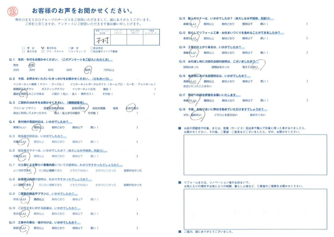 お客様アンケート一覧
