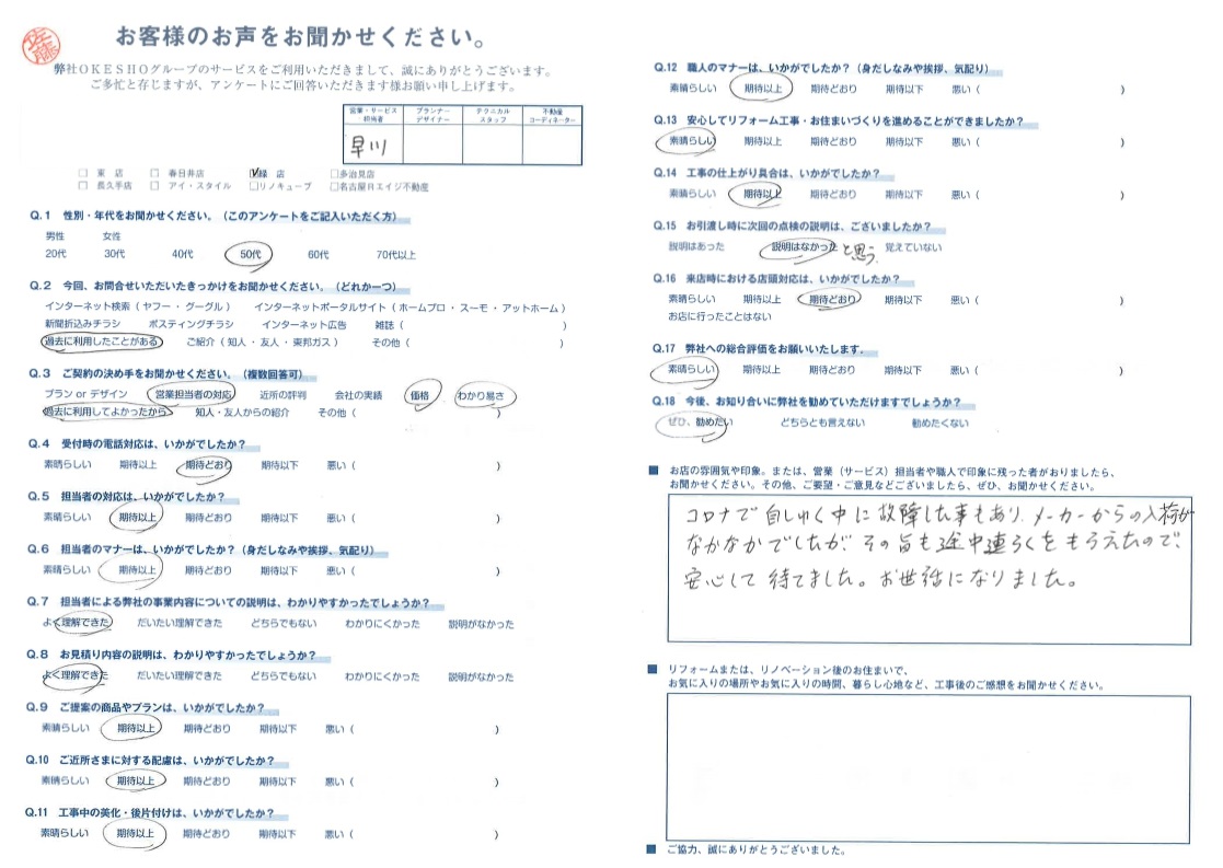 お店の雰囲気や印象。または、営業(サービス)担当者や職人で印象に残った者がおりましたら、お聞かせください。その他、ご要望・ご意見などございましたら、ぜひ、お聞かせください。