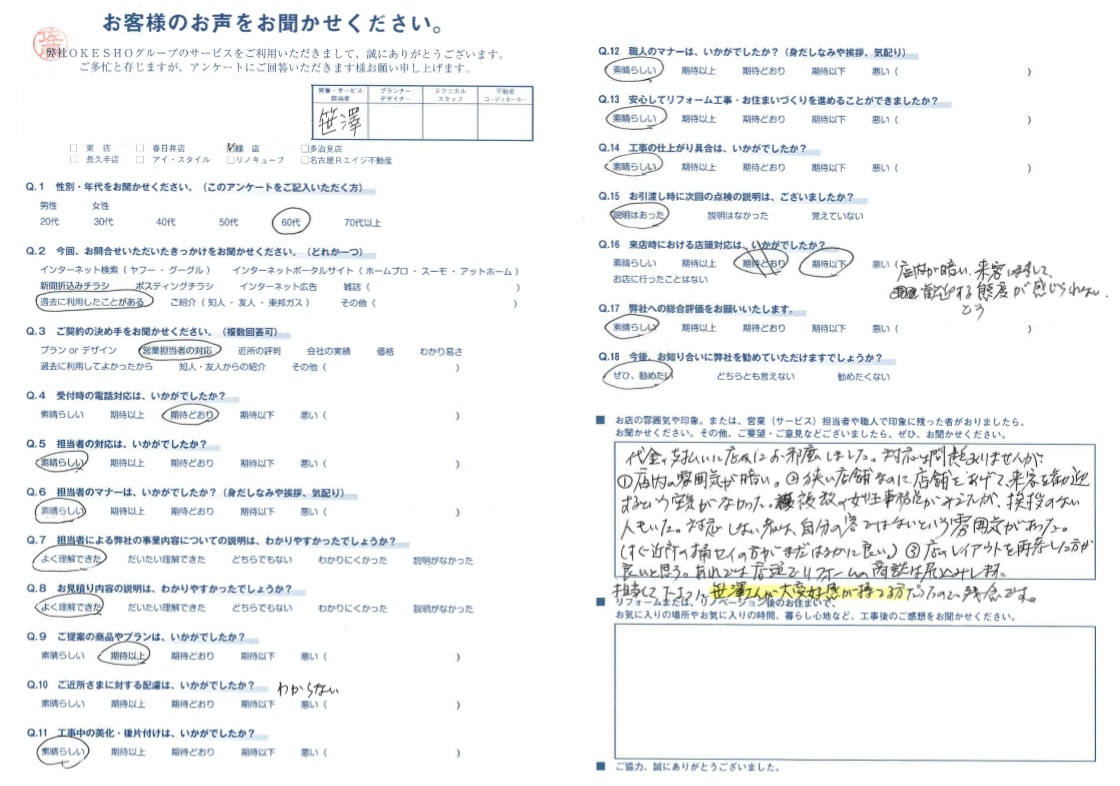 ③店のレイアウトを再考した方が良いと思う。あれでは店頭でリフォームの商談は尻込みします。