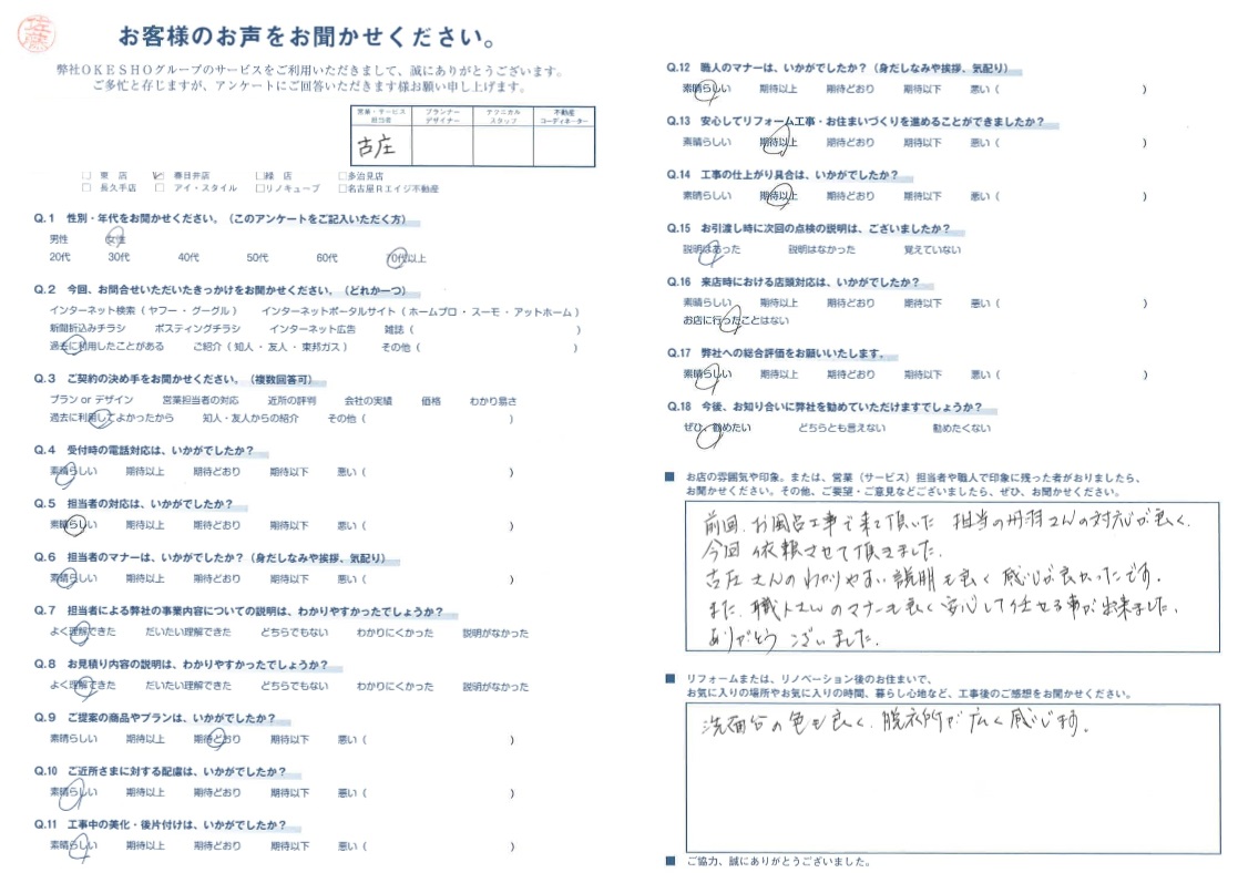 前回、お風呂工事で来て頂いた 担当の丹羽さんの対応が良く、今回依頼させて頂きました。