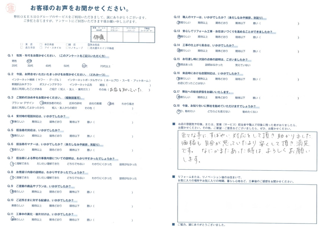 お店の雰囲気や印象。または、営業(サービス)担当者や職人で印象に残った者がおりましたら、お聞かせください。その他、ご要望・ご意見などございましたら、ぜひ、お聞かせください。
