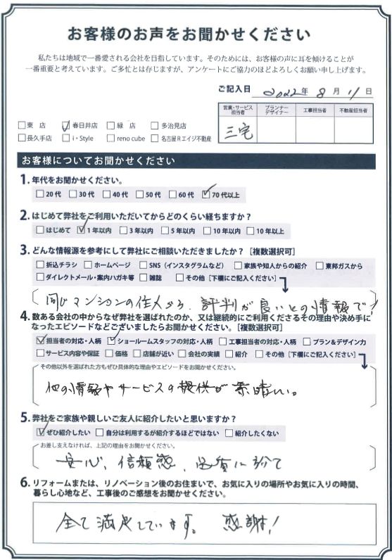 数ある会社の中から なぜ弊社を選ばれたのか、又は継続的にご利用くださるその理由や決め手になったエピソードなどございましたらお聞かせください。