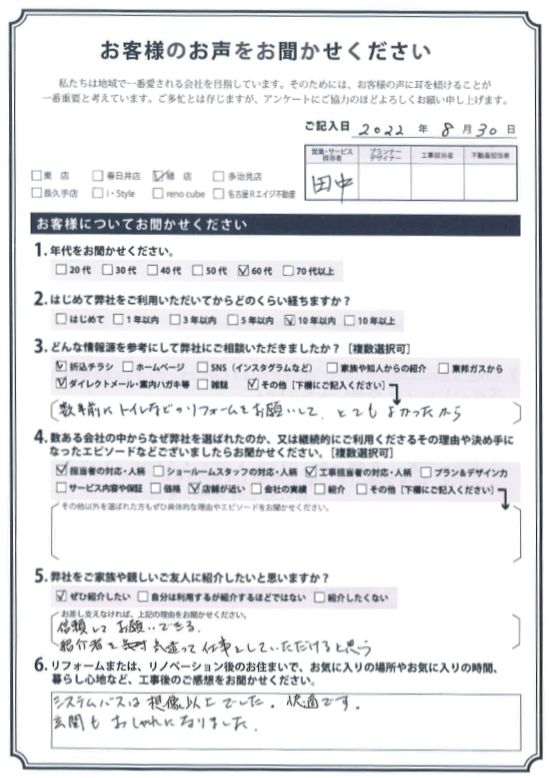 数年前にトイレなどのリフォームをお願いして、とてもよかったから。