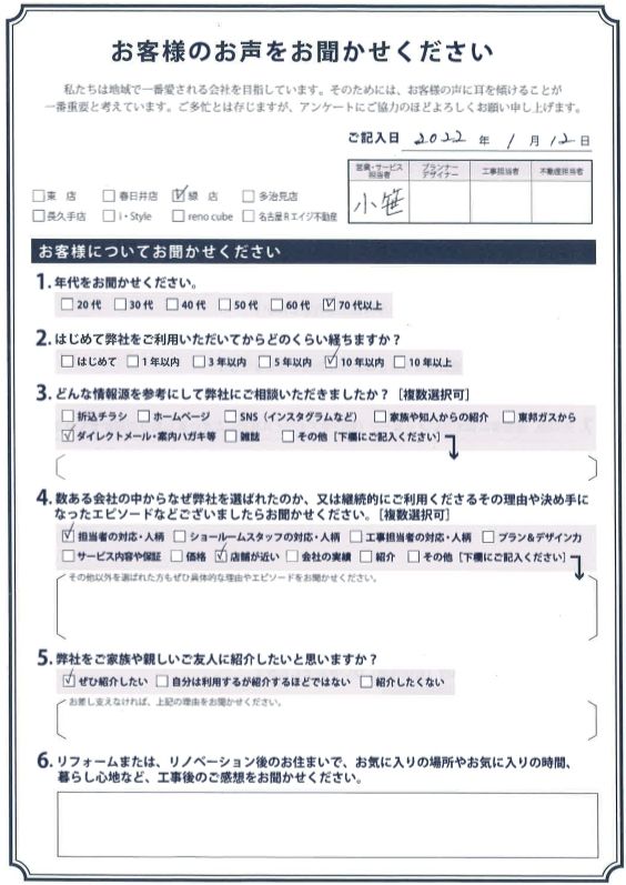 お客様アンケート一覧