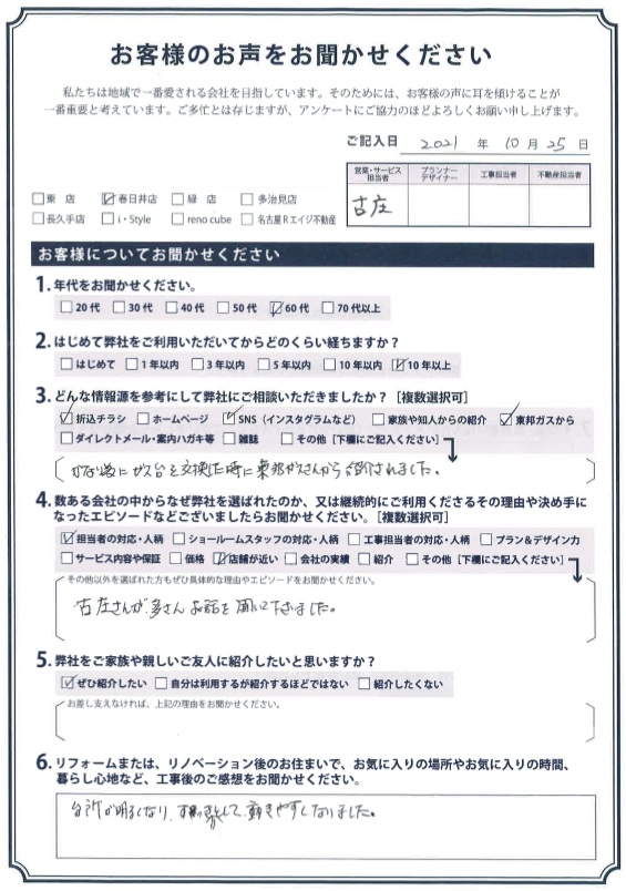 数ある会社の中から なぜ弊社を選ばれたのか、又は継続的にご利用くださるその理由や決め手になったエピソードなどございましたらお聞かせください。