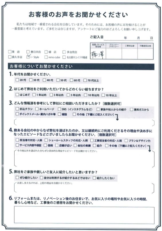 お客様アンケート一覧