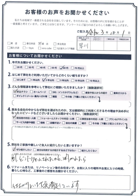 リフォームまたは、リノベーション後のお住まいで、お気に入りの場所やお気に入りの時間、暮らし心地など、工事後のご感想をお聞かせください。