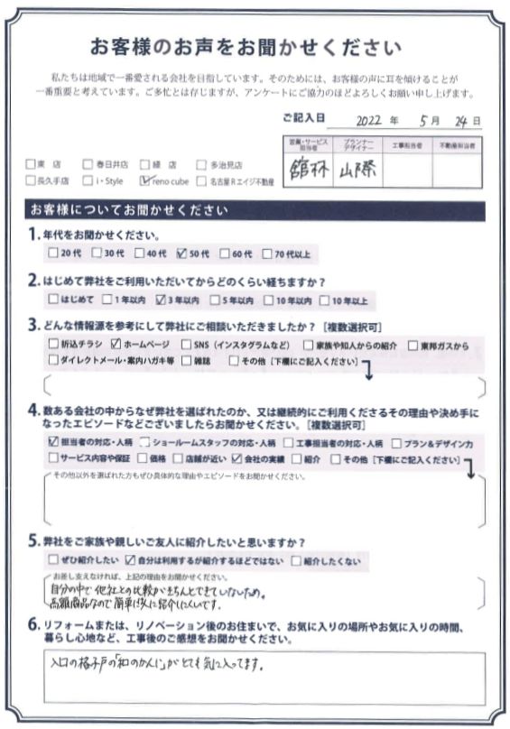 リフォームまたは、リノベーション後のお住まいで、お気に入りの場所やお気に入りの時間、暮らし心地など、工事後のご感想をお聞かせください。