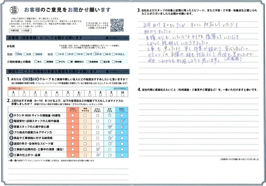 ガスレンジの交換の時も対応よくて、今回も(給湯器)良かったので