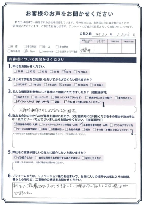 リフォームまたは、リノベーション後のお住まいで、お気に入りの場所やお気に入りの時間、暮らし心地など、工事後のご感想をお聞かせください。
