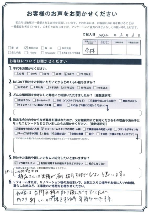 弊社をご家族や親しいご友人に紹介したいと思いますか?