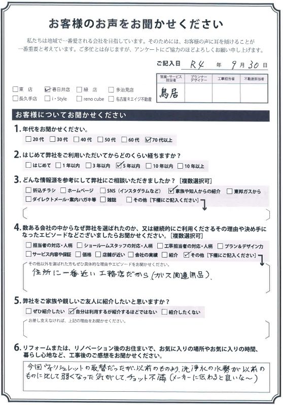 春日井市 Oさま