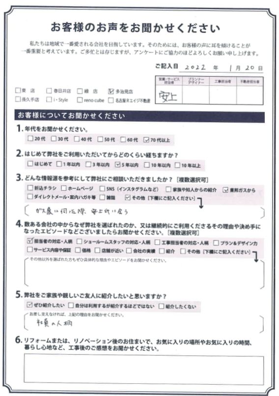 お客様アンケート一覧