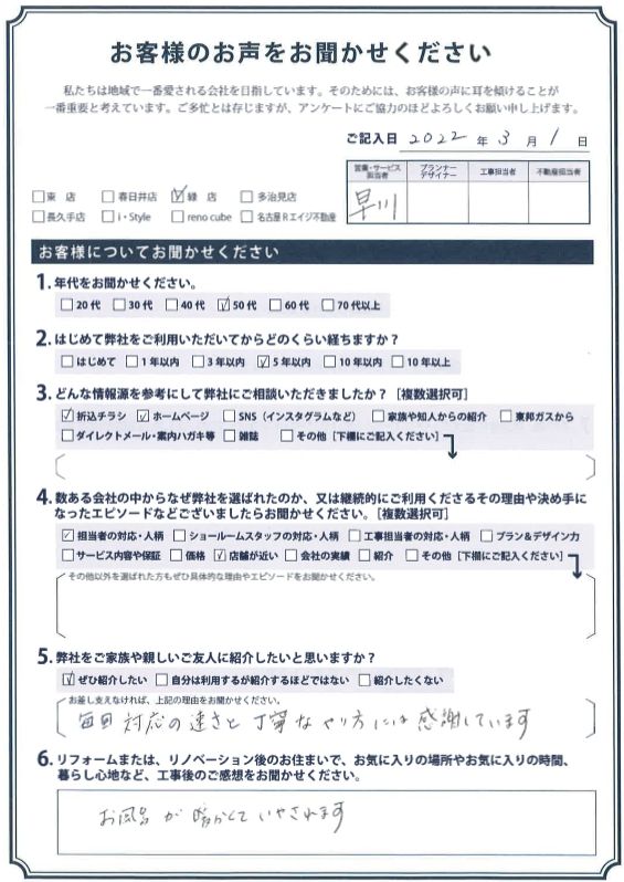 リフォームまたは、リノベーション後のお住まいで、お気に入りの場所やお気に入りの時間、暮らし心地など、工事後のご感想をお聞かせください。
