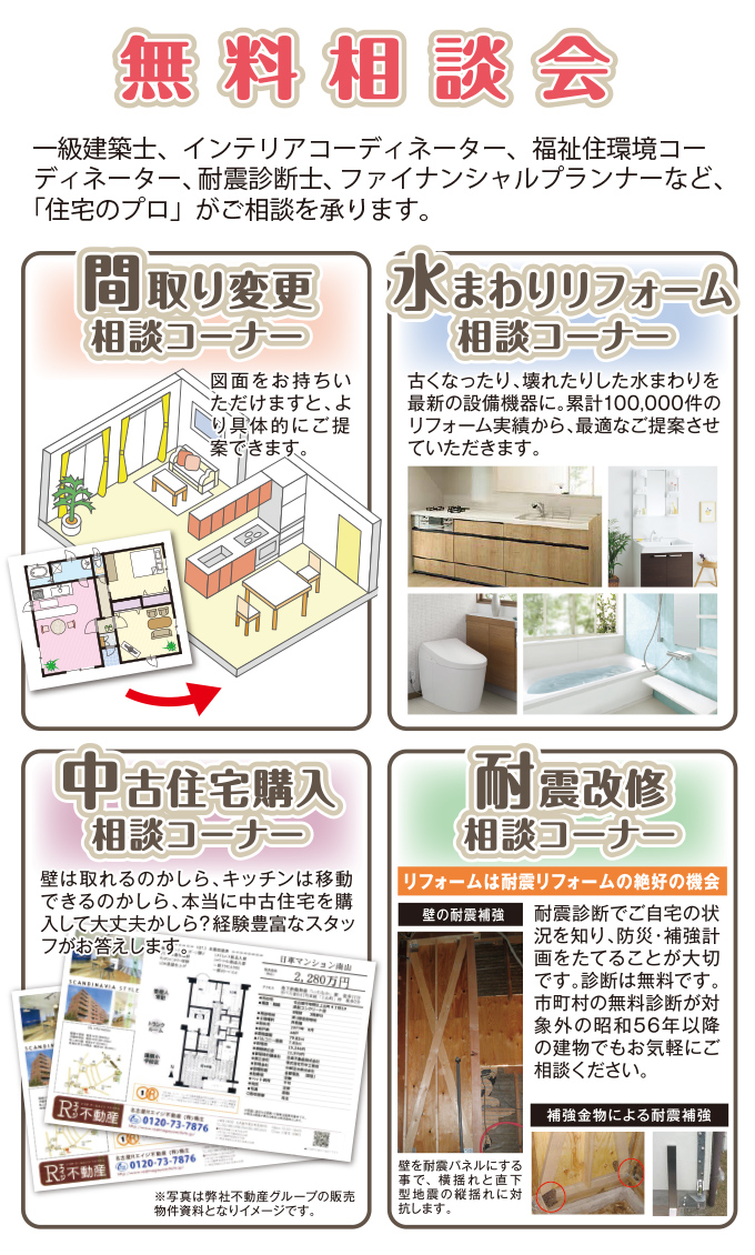 イベント開催中は混雑が予想されます。リノベーション・リフォームのご相談を個別にゆっくりとしたい方は、ご来店予約にて承っておりますので、そちらよりご予約をお願いいたします。