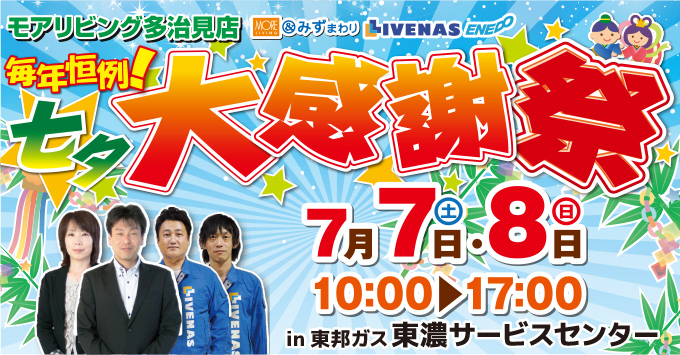 毎年恒例!水まわりリフォームやガス機器購入がお得になる七夕大感謝祭を東邦ガス東濃サービスセンターにて開催します。