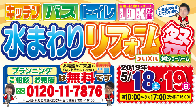 水まわりリフォーム祭をLIXIL小牧ショールームにて開催!(2019年5月18日、19日)