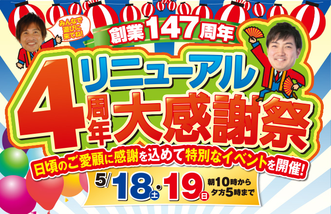 リニューアル4周年大感謝祭を緑店にて開催!(2019年5月18日、19日)