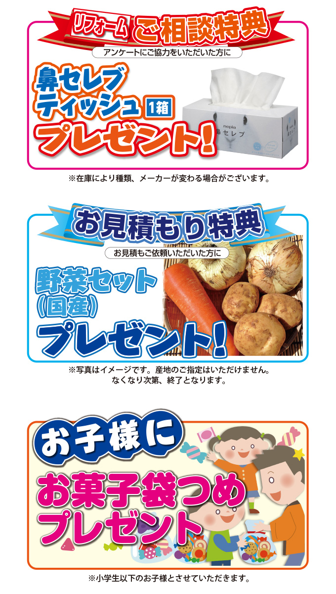 ※新規でリフォームをご相談された方が対象となります。すでに商談中の方は適用不可になりますので、ご了承ください。